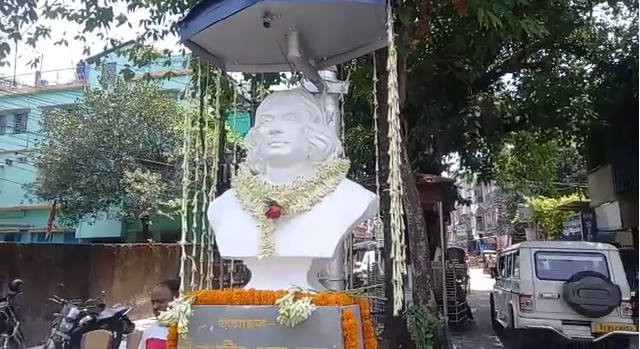 Siliguri, 26th May: The 124th birth anniversary of the revolutionary poet Kazi Nazrul Islam was commemorated today through a program held at Nazrul Sarani in Siliguri. The occasion was marked by paying tribute to the poet through the ceremonial garlanding of his statue.