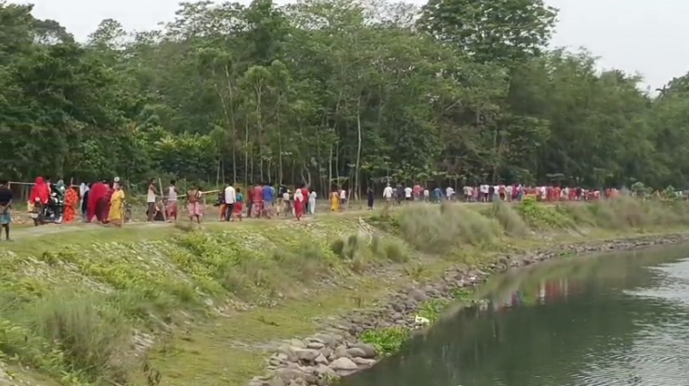 According to reports, the child accidentally fell into the river from the mother’s lap on the previous Friday night. Following a search operation by the Disaster Management Team, the child’s body was found on Sunday morning. Locals witnessed the body floating in the Raidak River and informed the police.