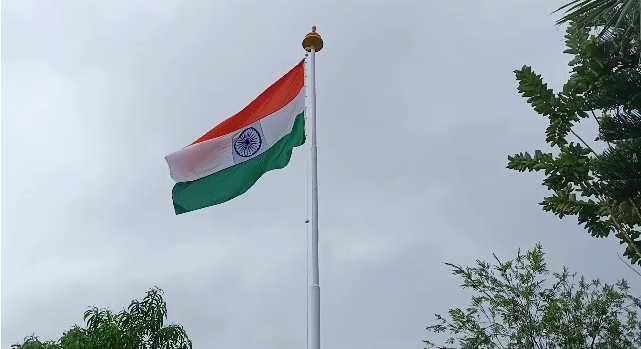 Kharibari, 09th August: A 54 feet ‘High Mast National Flag’ was hoisted under the initiative of the 41st Battalion of the SSB on the Indo-Nepal international border in Kharibari. The flag was hoisted on Wednesday, through a grand ceremony, in memory of the martyrs of the Quit India Movement. Additionally, the families of the martyrs were also honored.