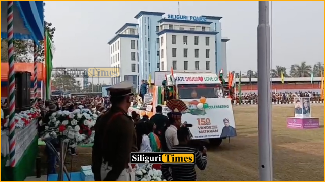 During the parade, Commissioner C Sudhakar was saluted by the participating contingents, which included police personnel, RAF units, and NCC cadets from Siliguri College and several schools. The Siliguri Metropolitan Police showcased its strength through demonstrations of BRAJ vehicles, water tanks, the Anti-Riot Squad, and VIP bulletproof vehicles.