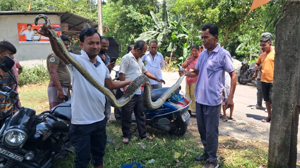 Rajganj, 25th July: An 8-foot-long python has been captured in Ambari near Rajganj. The python was caught Thursday morning by the Karatoya River while entangled in a fishing net.