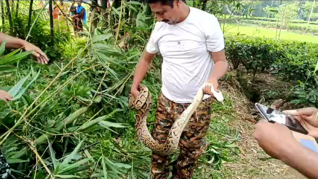Reportedly, local residents spotted the snake in the middle of a tea garden and promptly alerted the Green Jalpaiguri Voluntary Organization. Ankur Das, Secretary of the organization, and Vivek Jha, Sports Secretary, arrived at the scene and successfully rescued the python by cutting through the bamboo.