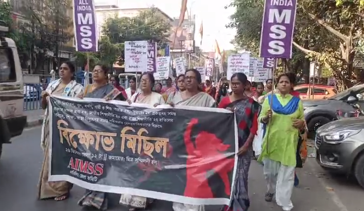 Siliguri, 26th December: On Tuesday, the members of the A.I.M.S.S. organization undertook a rally in support of several demands. The rally was taken out from Mitra Sammilani Hall located in Siliguri and circumambulated various areas of the city.