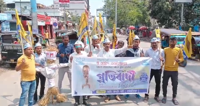 Cooch Behar, 22nd March: The Aam Aadmi Party (AAP) protested in Cooch Behar after the Enforcement Directorate (ED) arrests Delhi Chief Minister (CM) and AAP National Convenor Arvind Kejriwal in connection to excise policy case.