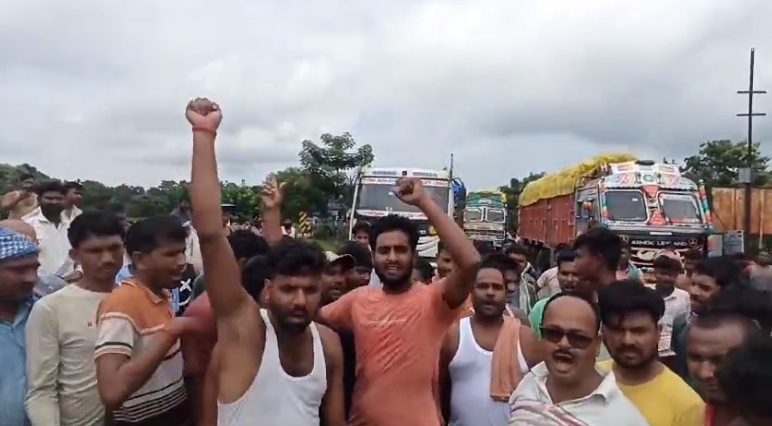 On Friday afternoon, the drivers temporarily blocked the highway to protest. District administration officials assured them that the stuck vehicles would be released on Saturday morning. However, when the situation remained unresolved, the drivers resumed the blockade on Saturday morning, further intensifying the standoff.