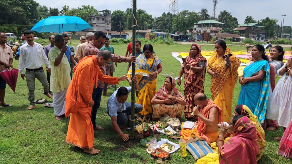 Rajganj, 04th September: The Agamani Ambari Sarbajanin Durga Puja Committee has officially commenced preparations for their inaugural Durga Puja celebration by performing the traditional ‘Khutti Puja’ at Ambari Targhera Maidan in Rajganj block.
