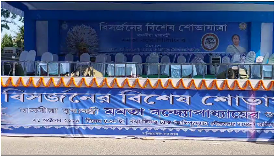 Alipurduar, 26th October: Alipurduar is all set to host the Durga Puja Carnival on Thursday. In this regard, a grand stage has been erected with sitting arrangements on the Buxa Feeder Road adjacent to the Alipurduar Municipality.