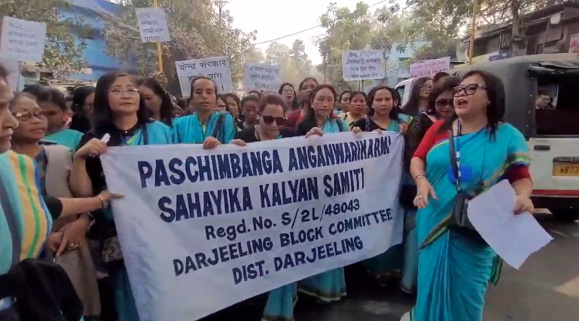 The protest began at the location near the Gandhi statue in Siliguri, with over 300 Anganwadi workers from both the hills and the plains participating. The workers marched to the SDO office as part of their demonstration.