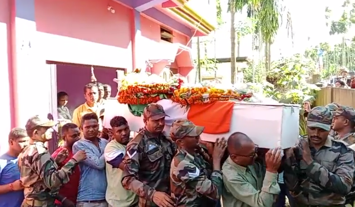 Subsequently, after paying homage at the Binnaguri Army Camp, the deceased body was transported to his home. Following this, an atmosphere of grief prevailed in the area. On Friday, Bimal Oraon’s last rites were performed with full state honor at Basra Ghat in Hamiltonganj. A crowd of locals gathered to get a last glimpse of the martyred Jawan.