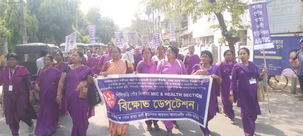 Siliguri, 11th April: The ASHA workers once again took to the streets to raise their voices in support of several demands. After a meeting at Hasmi Chowk, the workers submitted a memorandum to the Siliguri Municipal Corporation Health Office.