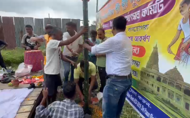 Bagdogra, 16th July: Preparations have commenced for the grand auspicious Durga Puja festival. In this regard, to attract the attention of the visitors, the Bagdogra Bihar More Sarbajanin Durga Puja Committee has completed the “Khutti Puja” with the customary rituals on Sunday. The occasion was graced by the Committee Secretary Laltu Saha, and Joint Secretary Sajal Roy accompanied by the other members of the Committee.