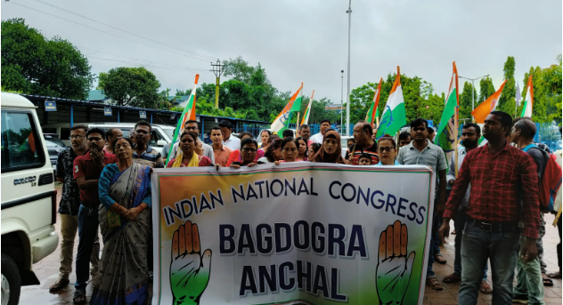 Bagdogra, 19th June: Today, the Bagdogra Zonal (Anchal) Congress Committee staged a protest at Bagdogra Airport. Congress workers demonstrated and later submitted a memorandum to the Airport Director, advocating for their 6-point demands. Amitabh Sarkar, the Naxalbari Block Congress President, highlighted several issues in the memorandum.