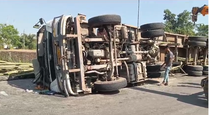 Fulbari, 25th October: A horrifying mishap unfolded at the Jiaganj area adjacent to Fulbari where a bamboo-laden trailer abruptly lost control and overturned in the middle of the Siliguri-Jalpaiguri National Highway (NH). As a result, the driver and his assistant suffered significant injuries.