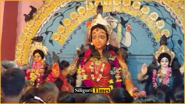 Jalpaiguri, 03rd October: On Ekadashi, Durga Puja celebrations resumed at the banks of Teesta in Jalpaiguri, where Goddess Durga is worshipped as Bandhani. For over 500 years, the tradition has been observed in the Barnes area of Maynaguri, Jalpaiguri.