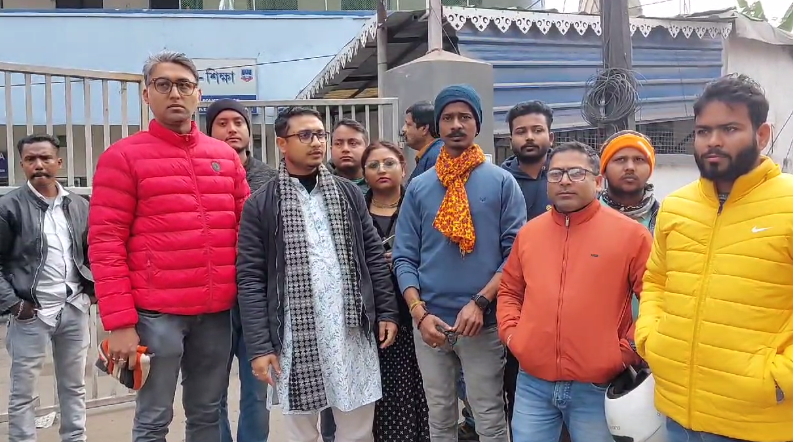 On Wednesday, the members of the Bangiya Hindu Mahamanch arrived at the Women’s police station and met with the IC. They further demanded the arrest of the accused Mohammad Alam in connection to the case. In addition, the protestors mentioned agitating at the accused teacher’s school as well as the DI’s office while urging the teacher’s suspension.