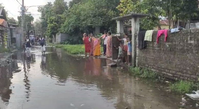 Siliguri, 25th June: Residents of Baribhasa in Dabgram II Gram Panchayat are facing significant difficulties due to water logging caused by the absence of a dedicated drainage system. The monsoon rains have turned the area into a river, causing severe inconvenience.