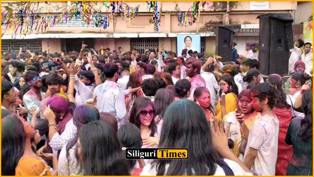 Siliguri, 13th March: The vibrant festival of ‘Basanta Utsav’ (Spring Festival) was celebrated at Siliguri College on Thursday, following the tradition of Santiniketan. The college premises were adorned with colorful ‘abir’, creating a festive atmosphere.