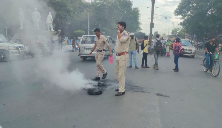 In a demonstration of support for the bandh, BJYM members burned tyres at Jalpai More, causing a temporary traffic jam. The protest led to a disruption of traffic in the area for some time.
