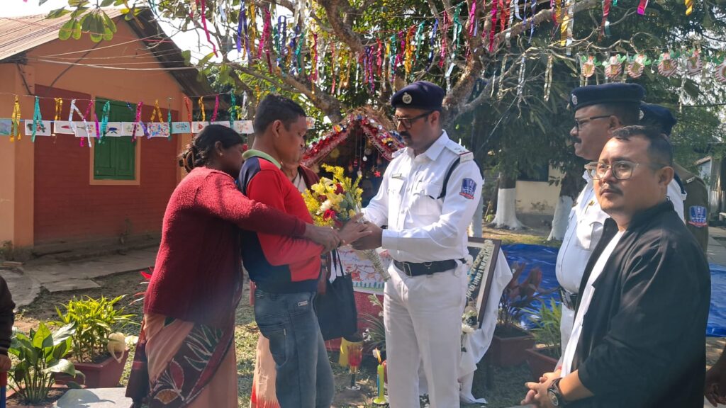 Rajganj, 25th December: Bhorer Alo Police Station marked Christmas by celebrating with children with special needs from Howrah South Point Handicapped Children Home in Bakhobari, Rajganj.