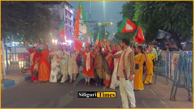 Siliguri, 14th November: Following the NDA’s path to forming a government under Nitish Kumar in Bihar, Siliguri witnessed a festive atmosphere as BJP workers and supporters took out a celebratory rally.