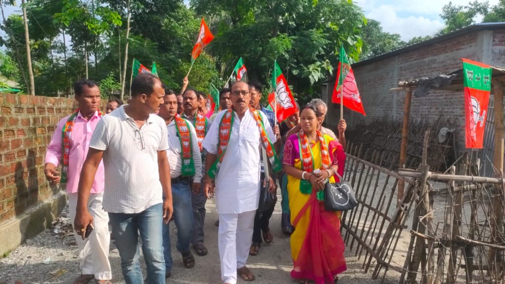 On Saturday, accompanied by party workers and supporters, the BJP candidates conducted door-to-door campaigning in Bhelki Para. The campaign focused on garnering support for Zila Parishad candidate Uday Shankar Sen Majumdar, Binnaguri Panchayat Samiti candidate Monika Adhikari, and Bhelki Para Booth Panchayat candidate Rohini Barman.