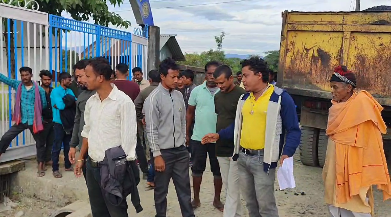 Naxalbari, 28th November: The Bharatiya Janata Party (BJP) leaders and activists, supported by the locals, halted the road construction work between Budhkaran Jote to Naxalbari College alleging the use of substandard quality materials.