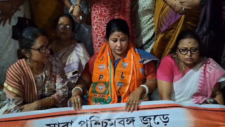 On Tuesday, members led by BJP Mahila Morcha State President Falguni Patra expressed doubts about the recent death of a nurse in Siliguri, questioning if it was suicide or murder.