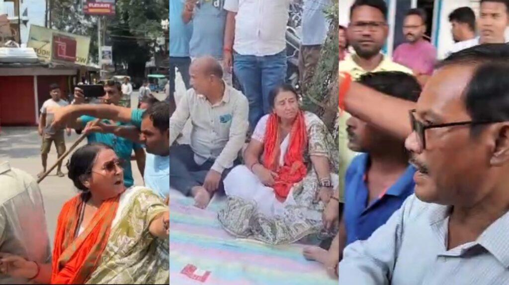 Siliguri, 28th August: On Wednesday, MLA Sikha Chatterjee staged a sit-in protest in front of the New Jalpaiguri (NJP) Police Station over the alleged stone pelting on BJP MP and MLA.