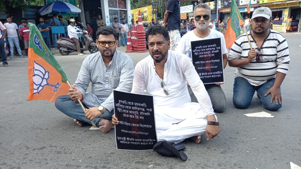 Siliguri, 16th August: The Bharatiya Janata Party (BJP) has organized road blockades across the state in protest against the R.G. Kar Medical College and Hospital incident, with significant demonstrations taking place in Siliguri.
