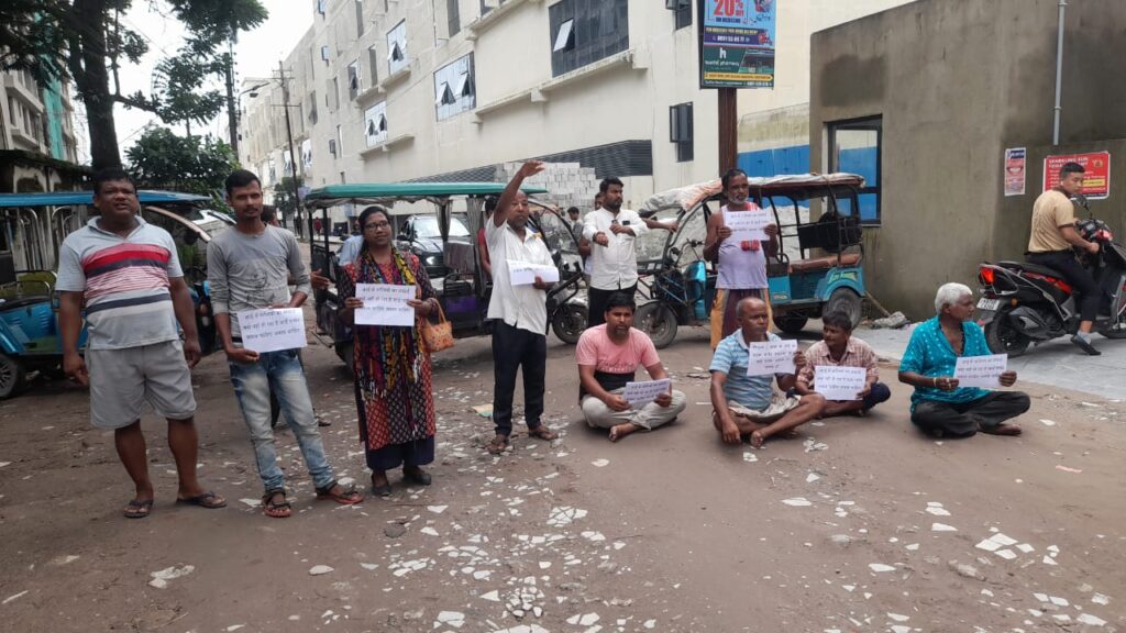 Siliguri, 20th August: The Bharatiya Janata Party’s (BJP’s) No. 08 Mandal Committee protested in Siliguri, on Sunday, demanding immediate restoration of dilapidated road. During the protest, the party accused the Siliguri Municipal Corporation (SMC) of neglecting the deplorable road conditions in Ward No. 42.