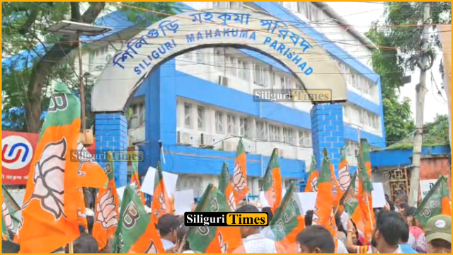 Siliguri, 04th August: The Bharatiya Janata Party (BJP) staged a protest in front of the Siliguri Mahakuma Parishad on Monday, accusing the ruling party of turning the council into a centre of corruption.