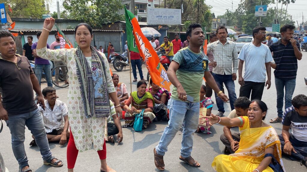 Fulbari, 28th April: Tensions flared up in Fulbari as BJP supporters blocked the road in support of the 12-hour Bengal bandh, leading to the detention of several activists by the police. The state BJP had called for the strike in the wake of the Kaliyaganj incident.