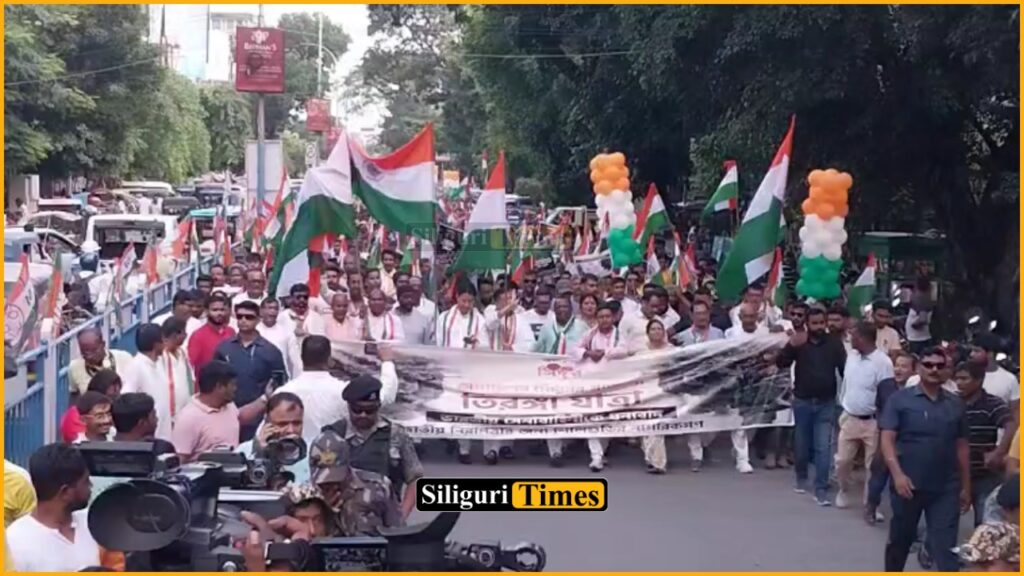 The rally began from Subhash Pally, Netaji More, and passed through several routes before concluding at Mahatma Gandhi More. The event was led by Leader of the Opposition in the West Bengal Assembly, Suvendu Adhikari, along with Darjeeling MP Raju Bista and other BJP leaders.