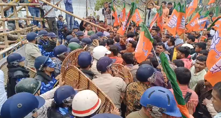 Dinhata, 20th March: The Bharatiya Janata Party (BJP) initiated a seige of Cooch Behar Superintendent of Police (SP) office through a rally in protest against the Dinhata incident.