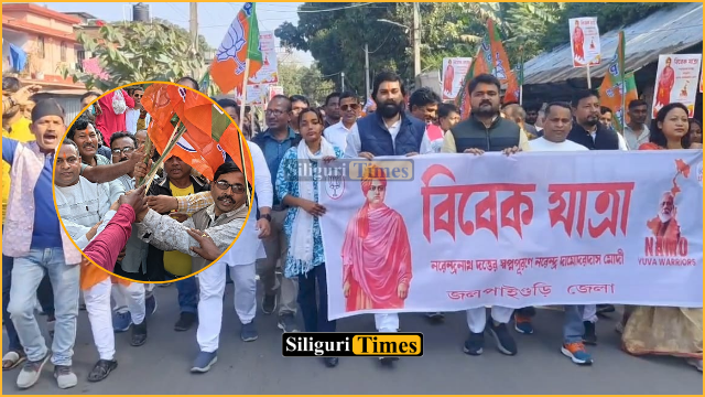 The procession began from Rajganj College More and concluded at Kalinagar More. Several BJP leaders and workers participated in the march, including Jalpaiguri District BJP president Shyamal Roy, Jalpaiguri district BJYM President Palen Ghosh, block convenor Nitai Mondal, Rajganj BJYM convenor Siddharth Pandit, Mahila Morcha leader Priti Barman, along with other party leaders and supporters.