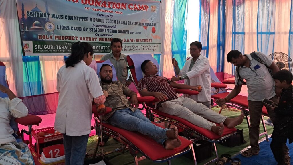 Rajganj, 16th September: On the auspicious occasion of Eid Milad ul-Nabi, the 36 Jamad Julus Committee organized a blood donation camp at Bandhunagar in Rajganj to mark the birth anniversary of Prophet Hazrat Mohammad.