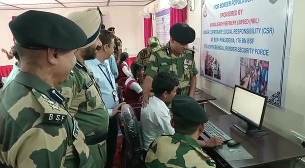 Phansidewa, 09th May: A computer training centre was inaugurated today at Phansidewa on the Indo-Bangladesh border, as a collaborative effort between the 176th Battalion of the Border Security Force (BSF) and the NRL organization. The inauguration ceremony witnessed the presence of various dignitaries, including Surendra Singh Sipahi, the officer of BSF’s 176th Battalion, Ainul Haque from Siliguri Mahkama Parishad, Sanju Guha Majumdar, the BDO of Phansidewa, Reena Ekka, the President of Phansidewa Panchayat Samiti, and others.