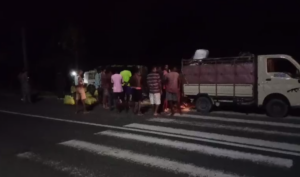 Alipurduar, 13th September: A pickup van carrying a load of brinjal overturned after losing control, [...]