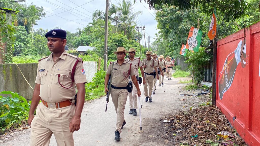Rajganj, 05th July: On Wednesday, the central forces and state police officials carried out a route march through Ambari in the Jalpaiguri district ahead of the panchayat elections. The aim was to restore peace and order in the state during the upcoming panchayat polls. Reportedly, route marches were conducted throughout the district and several locations were circumambulated including Kamarbhita, Chakiabhita, and Battala of Ambari in the Binnaguri zone, led by the officer in charge (OC) Sandeep Dutt of the Ambari-Falakata Outpost.