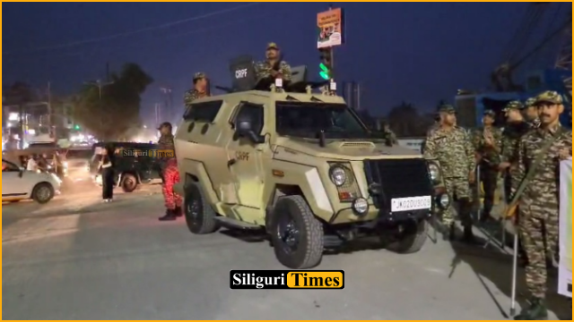 Siliguri, 16th April: Security arrangements have been tightened in Siliguri ahead of the first phase of the West Bengal Assembly elections scheduled for April 23, with central security forces conducting a route march using bulletproof vehicles in the city.