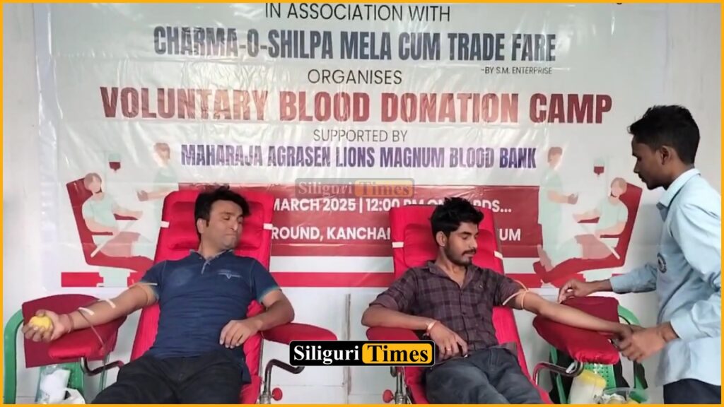 Siliguri, 20th March: The Charma-O-Shilpa Mela Cum Trade Fair organized a blood donation camp in Siliguri. The camp was held at Kanchenjunga Stadium on Wednesday, where members of the fair committee, along with traders, participated in donating blood.