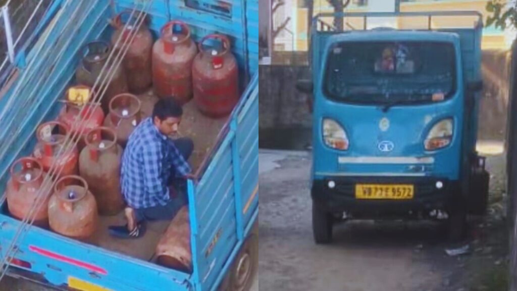 Siliguri, 05th December: A shocking video has emerged from Siliguri, showcasing possible illegal practices in gas cylinder deliveries. The footage shows a delivery boy from a gas company transferring gas from one cylinder to another inside the delivery vehicle itself. The refilled cylinders are then delivered to unsuspecting customers.