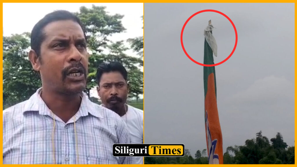 Upon receiving the information, the police from the Belakoba Out Post immediately arrived at the scene. Nakul Das, the Kisan Morcha Jalpaiguri district president of the BJP, alleged that a member of the ruling Trinamool Congress party was responsible for this act. The incident has been reported to the police for further investigation. In response, Narayan Basak, the Trinamool Zonal President, stated that their party does not support such actions on any party’s flag. He dismissed the BJP’s allegations as baseless.