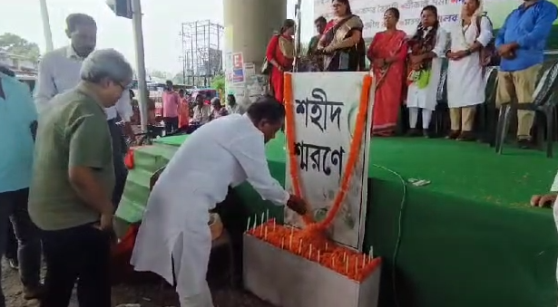 Bagdogra, 21st July: The Congress commemorated Martyr’s Day on 21st July at Bihar More in Bagdogra, organized by the Naxalbari Block Congress. Dignitaries present at the event included former MLA from Matigara Naxalbari and Darjeeling District Congress President, Shankar Malakar, and Naxalbari Block Congress President, Amitabh Sarkar, among others. They paid their respects at the martyr’s altar during the solemn occasion.