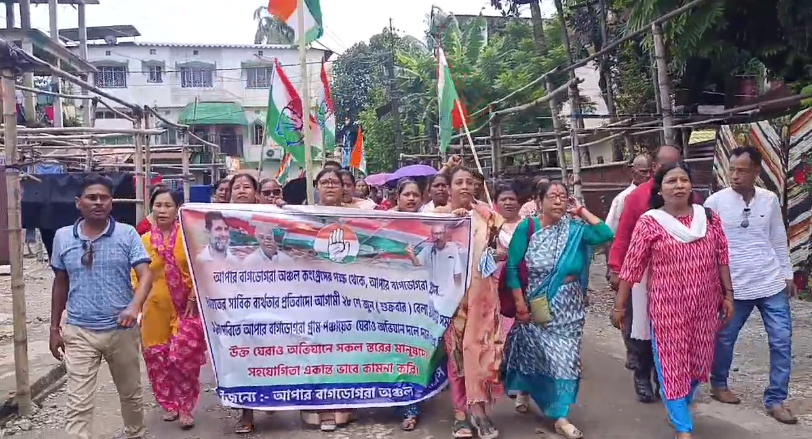 Bagdogra, 28th June: The Upper Bagdogra Region Congress Committee organized a protest march on Friday, alleging widespread corruption in the Gram Panchayat. Congress workers and supporters gathered at Bagdogra Bihar More before marching to the Bagdogra Gram Panchayat office.