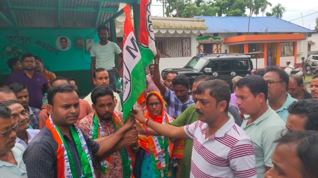 Rajganj, 30th July: In a significant turn of events after the Panchayat Elections, the winning Communist Party of India Marxist (CPIM) candidate Sabeza Begum joined the Trinamool Congress (TMC). Today, Sabeza of Danga Para Booth No. 107 under Majhiali Gram Panchayat went to the Rajganj’s MLA (Member of Legislative Assembly) and District Chairman Khageshwar Roy’s residence and extended her support to the party.