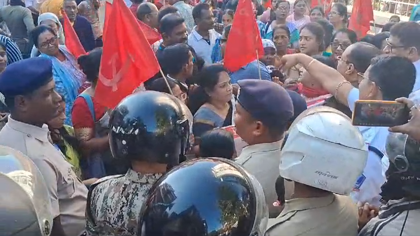 Reportedly, a heavy police presence was deployed in front of the Municipal Corporation to maintain order during the protest. The CPI(M) presented ten demands as part of their agitation.