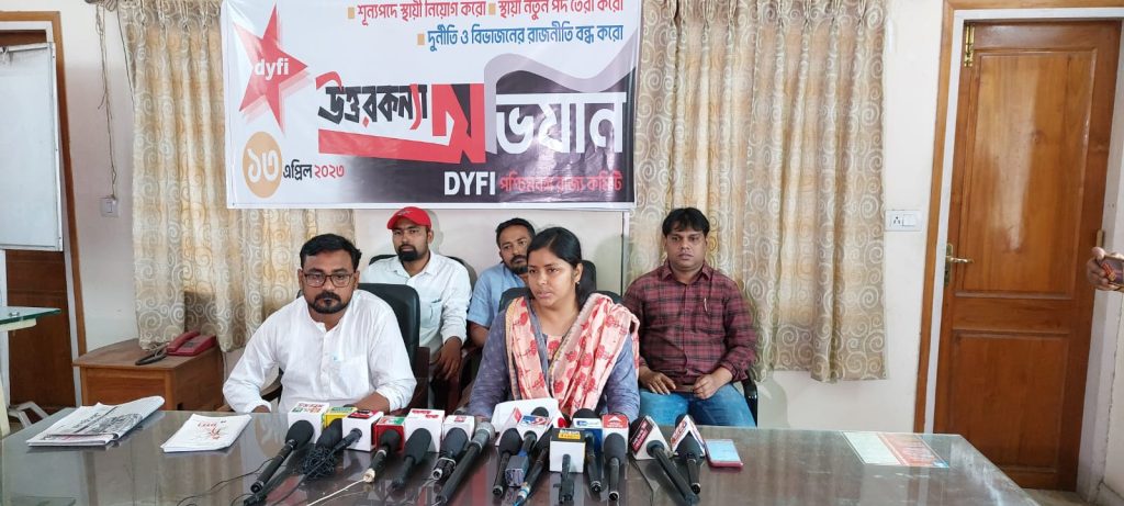 Siliguri, 10 April : The West Bengal State Committee of Democratic Youth Federation of India (DYFI) has called for a campaign at Uttar Kanya on April 13. State Secretary Minakshi Mukherjee held a press conference today at Anil Biswas Bhawan in Siliguri in this regard.