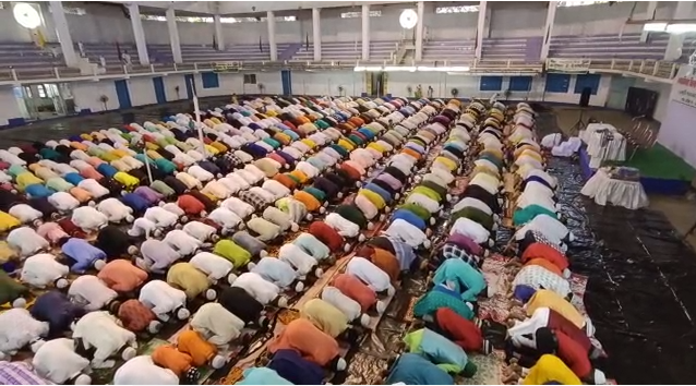 Cooch Behar, 22nd April: Eid prayers were conducted in various locations across the state, including in Cooch Behar district. The Anjuman-e-Islamia organized the Eid prayer at Netaji Subhash Indoor Stadium in Cooch Behar, which was attended by Cooch Behar Municipal Chairman Rabindranath Ghosh. The prayer commenced at 9 am, and after the completion of the prayer, everyone extended their Eid greetings to each other.
