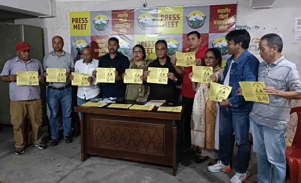 During a press conference held at the party office, key members including Samir Deep Blon, central member of BGPM, Subhash Pradhan, Chairman of the Kurseong Subdivision Committee, Pranam Rasaily, Secretary and Member, Anu Pradhan, Central President of Women’s Wing, Zeitun Nisha Khatoon, central member, Pemendra Gurung, Chairman of the Youth Wing Kurseong Subdivision Committee, and other committee members, jointly issued the declaration.